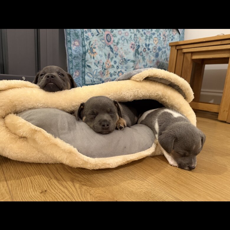 All of our puppies are developing their confidence, independence, and play with others whilst experiencing new stimuli such as textures and smells. Each puppy loves to lie on their back in your arms for a cuddle (this is also the position they each lie in whilst we do nail trims), give as many kisses as possible, and explore the world around them. Please see each pups bio for a description of their temperament.