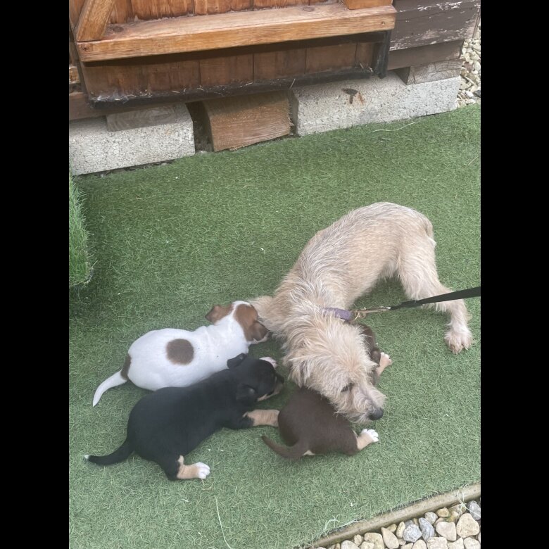 My beautiful girl bow has had 3 jack russel puppies1 boy and 2 girls. They have been flea, wormed and play with children. They have their own personalities and are very friendly. There looking for there forever homes.