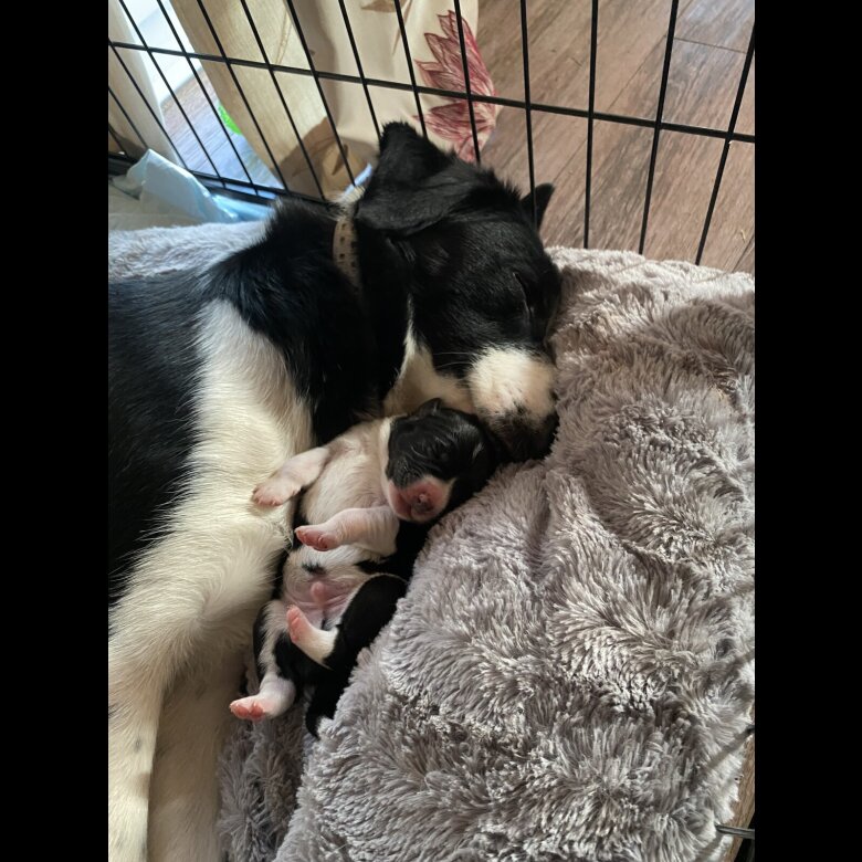 Mum is our lovely Border Collie and can be seen with the puppies. Dad is a Jack Russell.