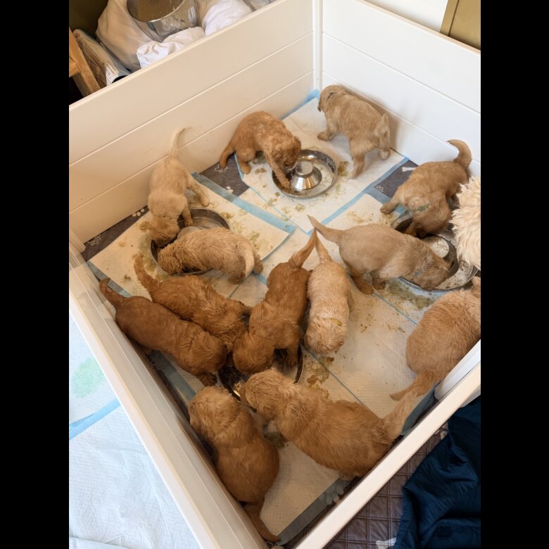 Exceptional multigenerational hypoallergenic labradoodles , I own mum and dad first and foremost these are my much loved pets , iv reasearched for a long time on my boy and girl before I bought them and this is there 2 nd and final litter as bertha has had 2 amazingly large litters her first was 11 and this litter is 14 I have breeded for exceptional Labradoodles’s there coats noses and health was of the upmost importance and wot I achieved was 2 exceptional healthy litters of true representation of a labradoodle and I am do very proud of both litters they are just beautiful and truly stunning in appearance ( you will definatley be getting stopped on walks ) all vet checked often and ready for visitors or video call , life time of support as have the last litter whom I’m in contact with all owners and meet up on reunions which is just marvelous ! I can’t express enough the teaserch and hours of finding my harold and bertha ( mamma and pappa to both litters , bertha has been a exceptional mamma and still is , I also kept a pup from last litter all photos are on to see , these are big dogs but will give you so much pleasure as they are a truly loyal loving family dog , also being multigens very hypoallergenic non shedding coats , breeded with much love ! Ask me any questions I will be more than happy to give you as much information as needed ps photos do them no justice they are adorable