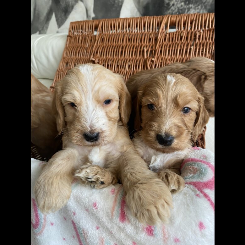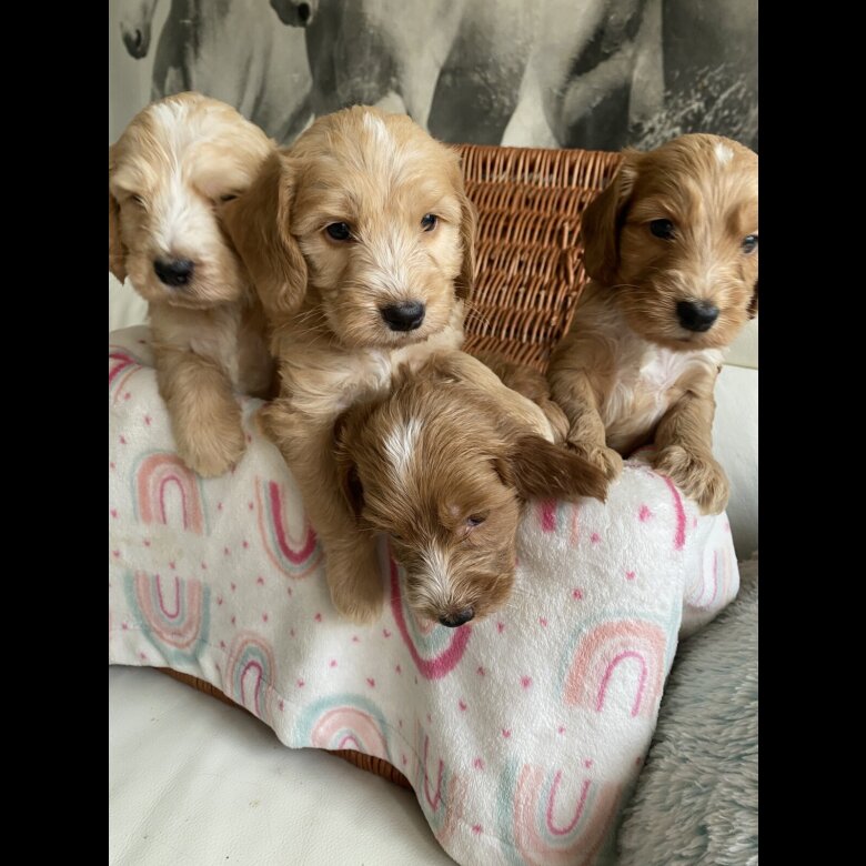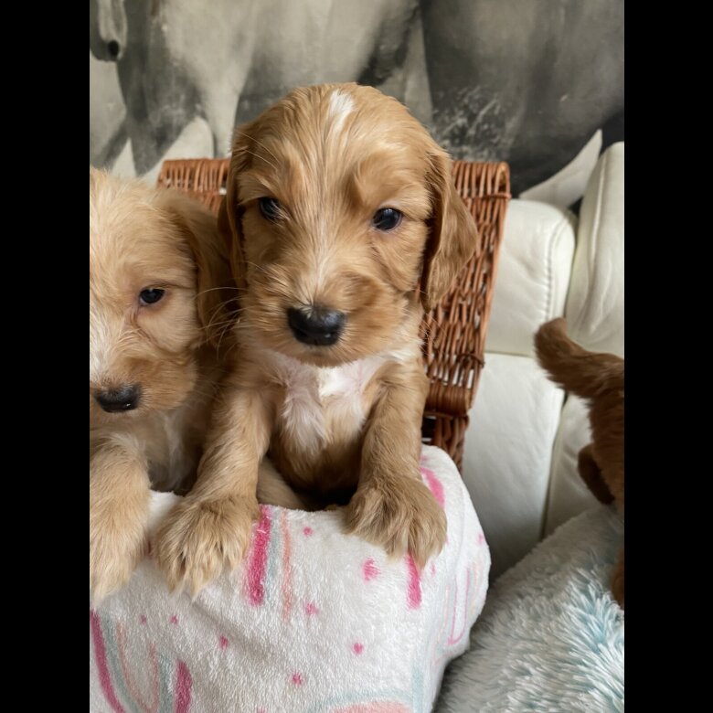 Puppies can be seen with mom . Puppies are likely to have a non shedding coat ,The puppies are being brought up in our busy family home. They are well socialised with children and other household noises . Puppies will be vet checked, wormed, microchipped and will also have had their first vaccination , and