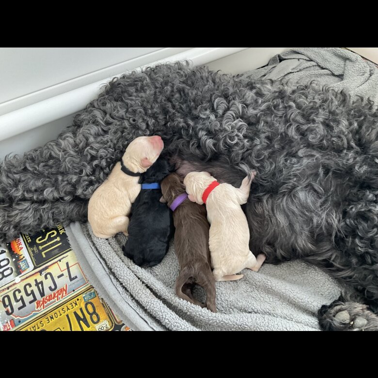 The puppies coats should be curly and low shedding. Toilet training will begin as soon as the puppies are fully weaned to help facilitate an easy transition into their forever homes. I am happy to offer advice and support throughout the puppy's life. NON-Refundable deposits of £300 are being taken to secure a puppy with the remainder payable on collection. New owners are welcome to visit mum and her puppies as soon as the puppies are weaned, I will in the mean time send regular Pupdates and videos so that you can keep up to date with your puppies progress.