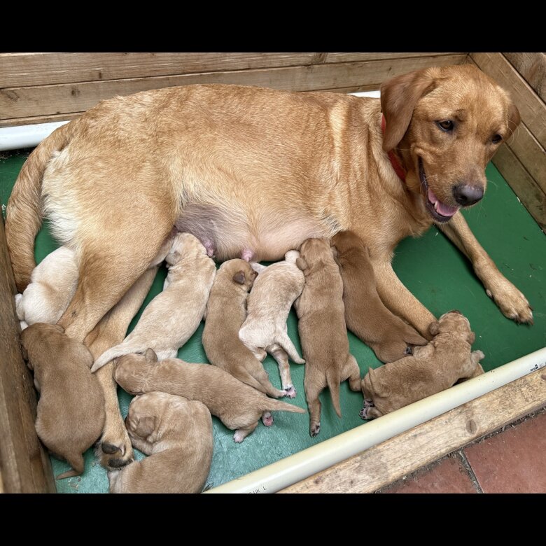 Both Mum and Dad are our family pets and can be seen together with the puppies in a family environment, and Lola’s Mum was a Fox Red Labrador from the neighbouring farm.