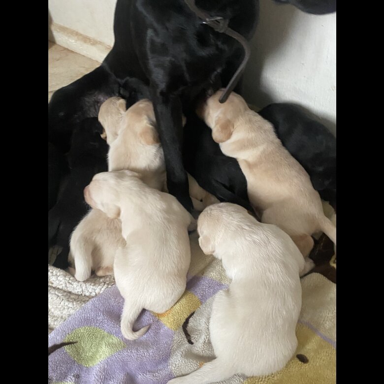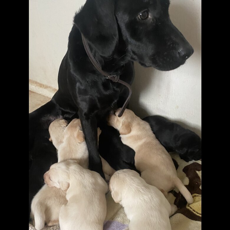 Joy and Queenie are our beautiful KC Registered black and yellow Labrador Family Pets . They have given birth to 9 beautiful Yellow & Black Labrador puppy’s, born on 19 and 23 January. We have beautiful 4 girls and 5 boys absolutely lovely, kind and friendly. Mum and dad are our family pet and they are KC Registed. They have the most amazing temperament they are excellent with other dogs, cats and are my 4 children’s best friend! The puppies have been brought up in a home environment and getting used to all sorts of sounds and lots of love. They will be ready to leave our home from 19 and 23 March 2026. Puppies will have had: • Vet Checked •First injections •Microchipped •Flead using Frontline • They will be wormed every 2 weeks with Drontel Puppy wormer