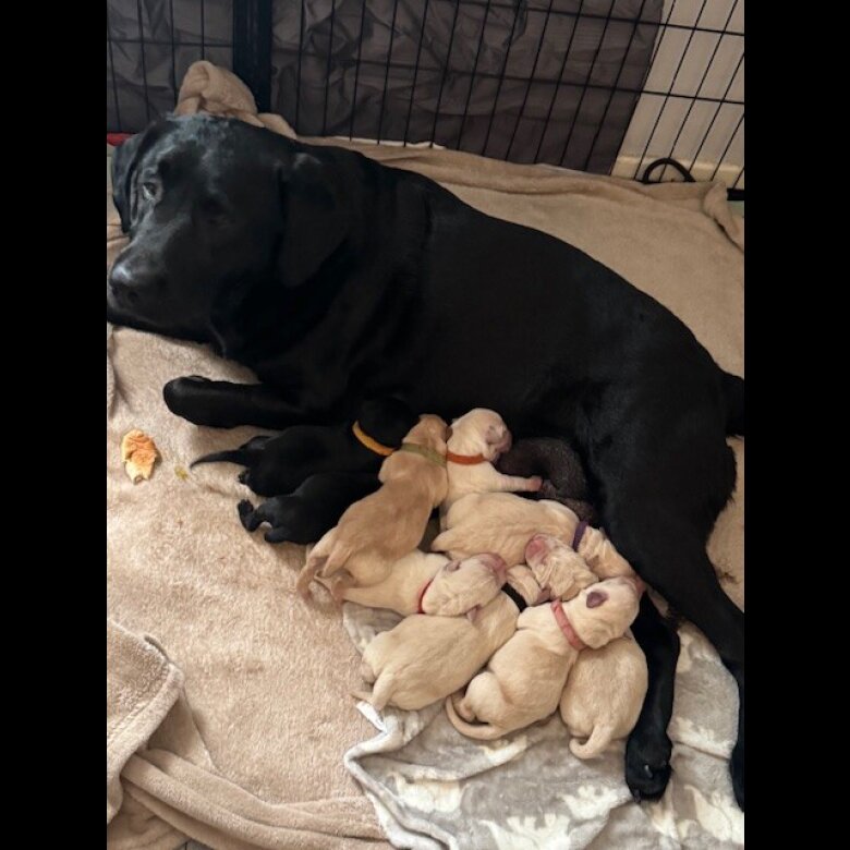 Our beautiful black lab Ebony safely delivered 9 stunning puppies. 6 boys and 3 girls.