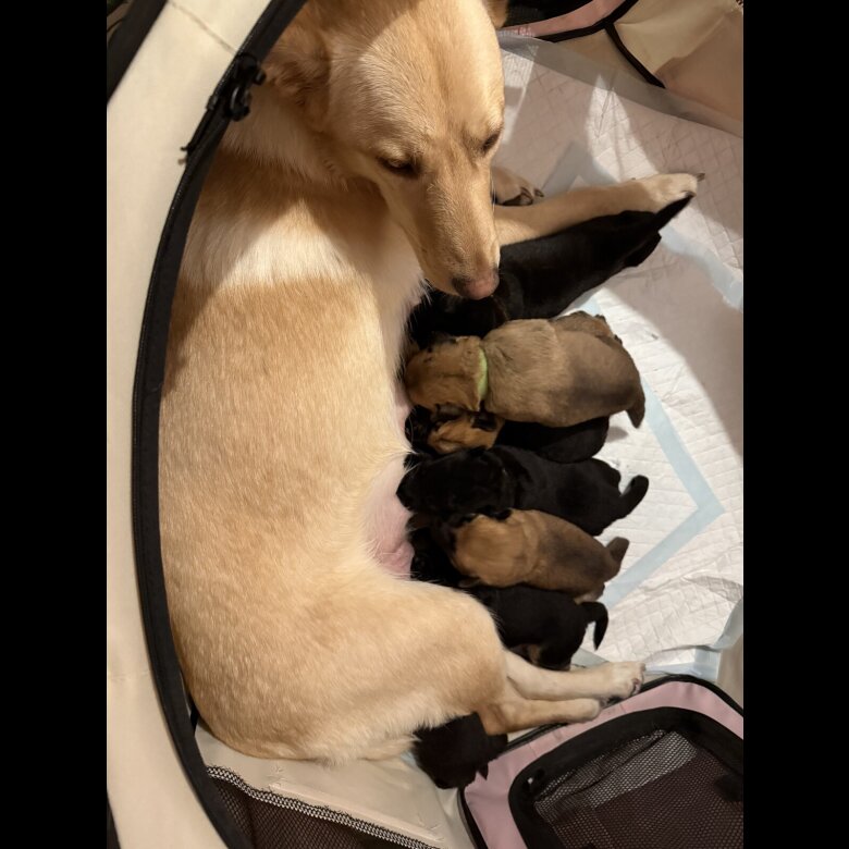 8 Labrador mix and German shepherd puppies for sale. 6 boys (2 tan, 3 black, 1 Black and Tan) and 2 girls (1 tan and 1 black).