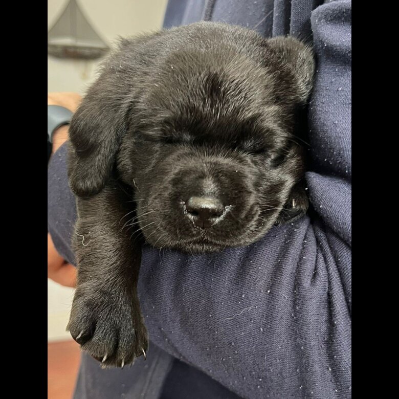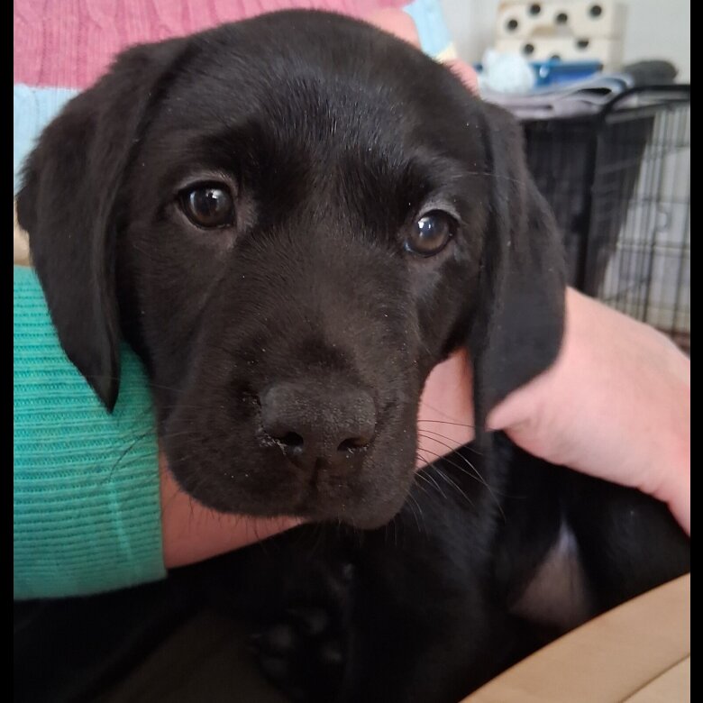 Eight happy, healthy puppies are settling in well. 5 girls and 3 boys, all black like their mum.