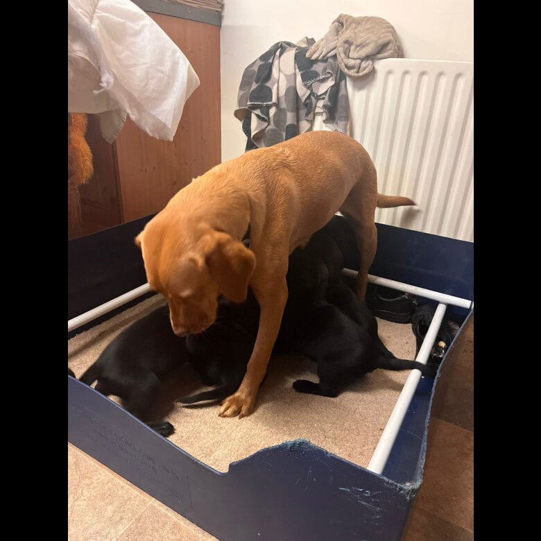 11 lab cross pups, mum is a lab and dad is a lab cross, we think he is crossed with a spaniel or collie, this was an accidental mating as the dog escaped and got into our yard. 8 boys 3 girls can be seen with mum. Raised in the house and been well handled. All pups are microchiped and will be wormed up to date before leaving.