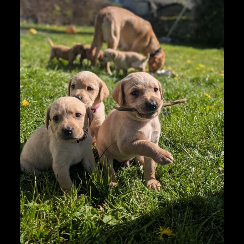 We have 9 beautiful Labrador puppies available — 2 fox red and 7 yellow — all raised in a loving family home alongside our 3 children and 2 cats. They are well handled daily and given the very best start in life, making them confident, friendly, and well-socialised.