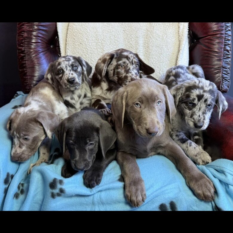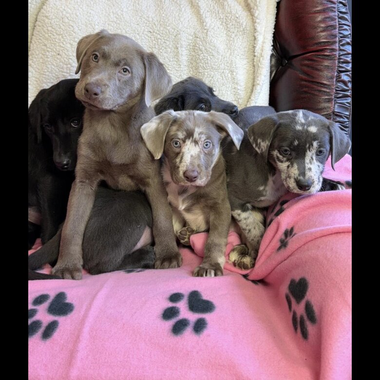 Sally is our loyal and loving family pet. After plenty of research to find Sally the perfect mate, we matched her with a stunning Leopard Labrador who is responsible for the unique selection of colouring amongst the pups, but also renowned for his desirable temperament and trainable attitude.