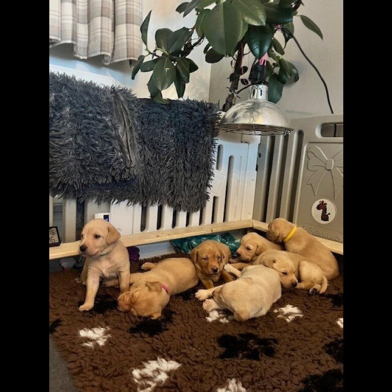 My beautiful Labrador has had her first litter of eight gorgeous golden puppies, and we now have 5 lovely pups still available. They have been raised in a loving family home and are well socialised with children, giving them calm, confident temperaments that are developing beautifully.