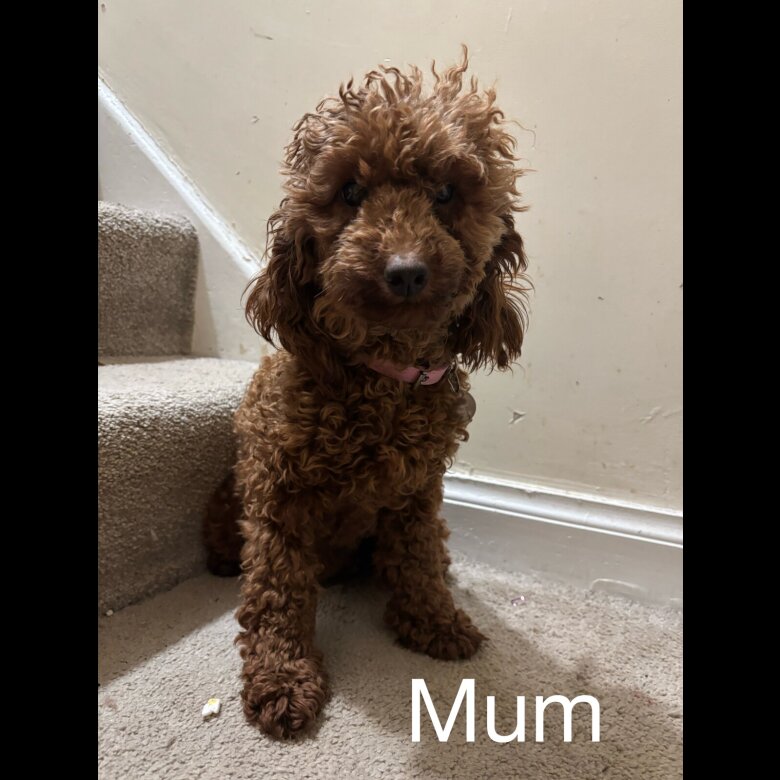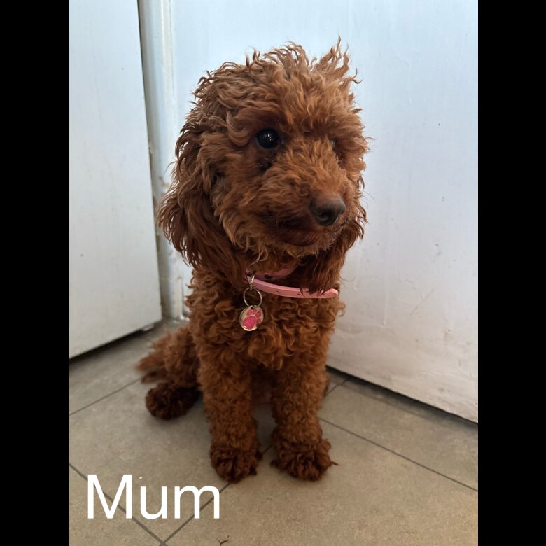 Mum is our lovely red miniature poodle and she is a wonderful family pet. She is KC registered and DNA health tested of genetic conditions specific to her breed. Mum has a lovely gentle and kind nature and is very well behaved and patient around our young children.