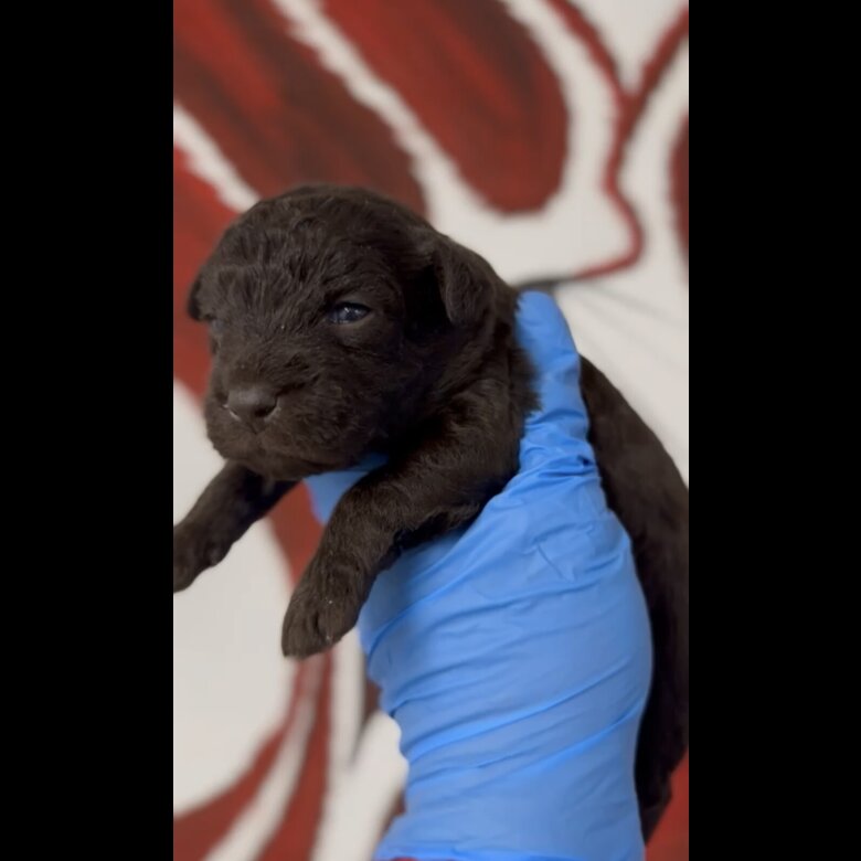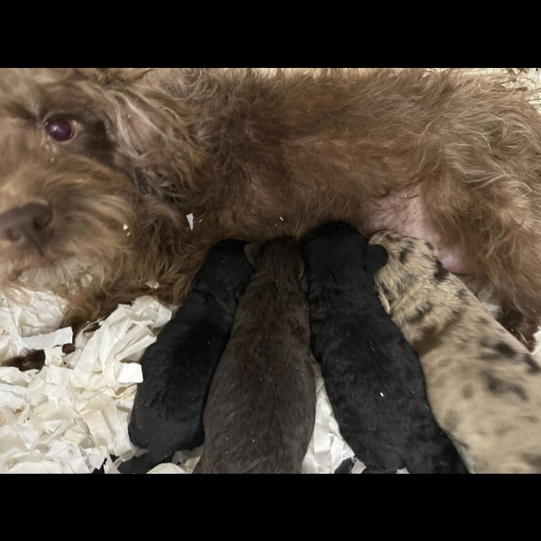 Outstanding puppies from outstanding unique parents, our beautiful imported Merle miniature poodle boy “Ronaldo” & our beautiful chocolate patterdale “Kelly” have given us 4 beautiful babies