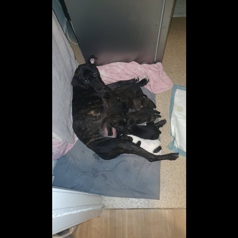 We are proud to present a stunning litter of Cane Corso x English Bulldog puppies, currently available to loving forever homes. These puppies possess wonderful temperaments, balancing a playful, outgoing personality with a gentle and affectionate nature. They have been raised in a busy family environment, are well-socialized with our three-year-old daughter and our resident Cocker Spaniel, and are accustomed to daily household life. We are happy to provide additional photos and videos upon request, and both the mother and father are available to be seen. A £100 deposit is required to secure your chosen puppy, with the remaining balance payable in cash upon collection. Please direct message for further information or to arrange a viewing. The deposit also covers there first injections worming and fleaing.