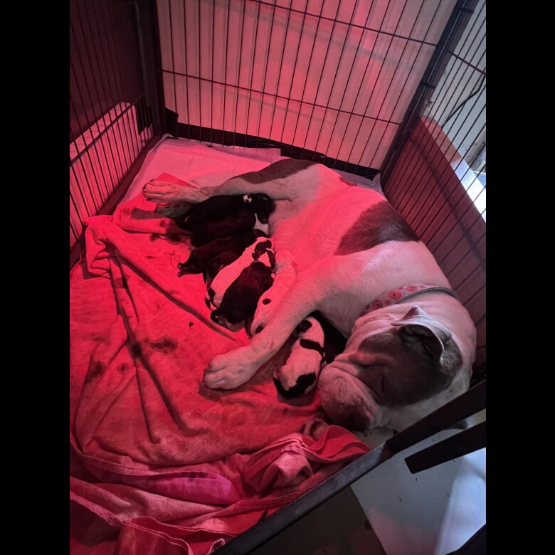 Mum is an Old Tyme English Bulldog and Dad is a Sproodle. The pups have a great mix of both breeds – friendly, playful and full of character.