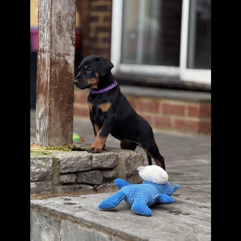 F1b Dobermann We are proud to announce the birth of 10 F1b Working Dobermann puppies from proven/titled bloodlines and are now taking reservations for a spot on this breeding. These puppies will only be sold to Working/Active pet homes. F1b means we are back crossing to a dobermann so these puppies will be 75% Dobermann 25% Bandogge Instagram ULTIMATE_PINCHERS All of these puppies will come with lifetime support from me. All the puppies from the litter will be getting daily exposure to different stimuli and environments, getting them ready for the real world, exposing them to loud noises, children, people, dogs, cats, car journeys, walking on leads, house training and they will also be going to a couple of puppy therapy days, where they will get lots of interaction from different people and children. If you would like to see pictures/videos of Keres and my other personal dogs my Instagram page. There is also a section in my highlights called pups where you can see how I raised my last litter and all I did with them, being a breeder is not my job I have a love for dobermanns and dogs in general so I am doing this breeding so that I can keep one for my programme. I prefer to not be a full time breeder as I feel by having just the odd litter here and there then I am able to put 100% of my time,effort and love into them. The dam is my own personal dog called Keres. She is not only my pet but she is also worked in protection, high level obedience and competes in multiple trials around the UK. She has placed top 3 multiple times against some of the best working dogs in the uk. She is 50% Dobermann & 50% Bandogge. She is a very easy dog to own, eager to learn, social towards people and good with dogs and other animals if introduced correctly, very calm and easy in the house with a very nice off switch. Dont let that fool you because with one word you can switch the dog into drive and when it comes to training she is a very driven and energetic dog so you will only get to experience and enjoy the nice peaceful side of her once all her physical/mental stimulation needs are met. 3rd place T&T Junior class 2023 3rd place T&T C class 2024 3rd place T&T B class 2024 Her dam is Olga Von Belić house, she is a European Dobermann with a blood line full of show/working titled dogs. Her sire is a dog called BVK Duece. He is a Bandogge and is very well known in the working dog community. He has proven himself multiple times in UK trials bringing home multiple achievements as follows: 2nd place AVD Long send (11months) 1st place AVD Long send 1st place AVD long send 3rd place AVD long send 2nd place ACA long send 1st place AVD silver 1st place AVD silver 1st place AVD anniversary suit 1st place Fright Night suit class 1st place Trials and Tribulations B Class The Sire to this litter is a dog called Midas who is a pure Dobermann. Who also is worked and competes in trials in the UK. He is a very good example of what a Dobermann should be, elegant, powerful and athletic. He is a very confident and driven dog. With a very strong bloodline behind him. Social towards people/dogs if introduced correctly. 1st place Lorockmo 2025 Dobermann Class 2nd place Lorockmo 2025 Dobermann long send 3rd place Lorockmo 2024 Dobermann Class His sire is a dog called Cato Carlos Bohemia an ipo3 titled dog with a lineage full of ipo2/3 titled dogs. His dam is Patryk Black Beauty Lady who is a direct offspring from Elise Pride of Hunnoterra & Yanez Di Altobello (Hagan) who is the ONE AND ONLY Dobermann to ever win a AVD GOLD CLASS. If you have any questions or want to enquire please feel free to contact me. Pictures/videos of both dam/sire are available on request. I am only opening up 6 spots for reservation. 3 males 3 females 1st male ❌ 2nd male ❌ 3rd male❌ 4th male❌ 5th male✅ 6th male ✅ 1st female❌ 2nd female❌ 3rd female ✅ 4th female ✅