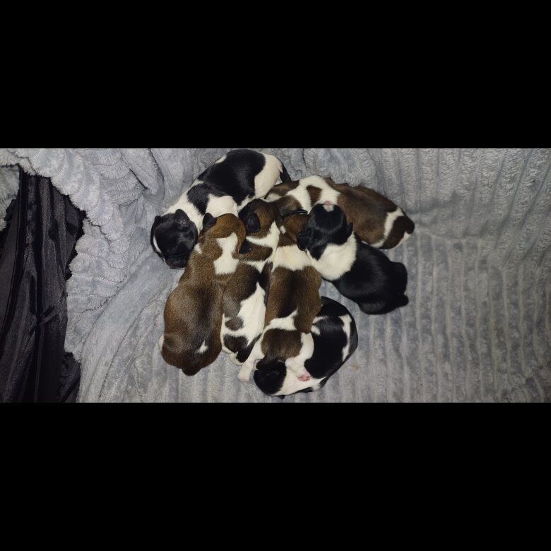Our 2 lovely family dogs had a stunning litter of 7 puppies. These puppies are a mix breed of shihtzu and beagle cross. Dad is a Pedigree tri colour shihtzu **** old. Mum is a beagle cross and is 3yrs old. This is the 2nd litter from the dogs and has been 14 months in between litters. I still receive updates from new owners of 1st litter. This will be the last lot of puppies from our 2 pets as both are going in for neutering. The puppies do tend to take on dads shihtzu genes. These puppies will be small breed and will not grow to big dogs. All puppies will be microchipped before leaving us and we will be following a flea and working treatment throught growth untill leave date. Puppies were born January 4th. We have 3 black and white boys, 1 brown and white boy and 3 brown and white girls. I can send updates of puppies to new owners at any point day or night as someone me or hubby will be home with babies and mam and dad. This is a opportunity to chose your new baby from an early age and see the growth progress before they arrive home with you. A small deposit secures your puppy if choice. Any questions at all please just ask. Thankyou