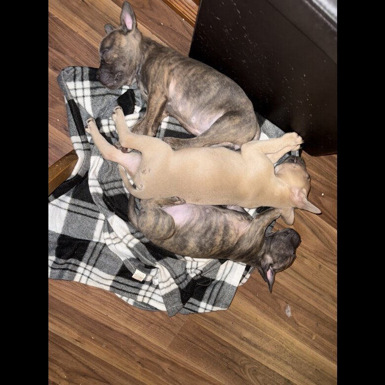 Beautiful staff x Frenchie 2 girls & 1 boy they will be upto date with flea and worming, microchipped. Very gentle very playful loves sleeping on you and cuddles