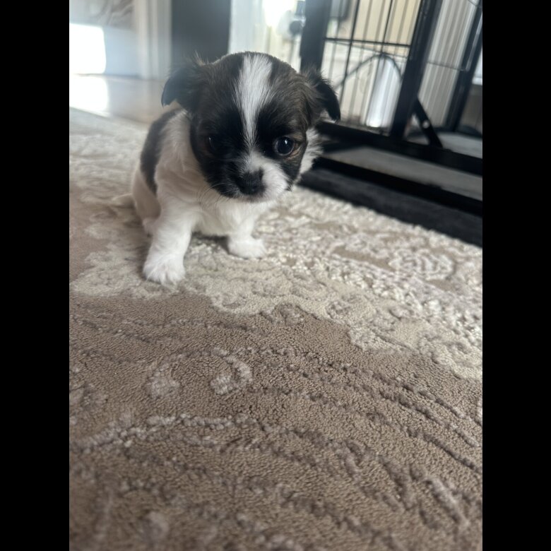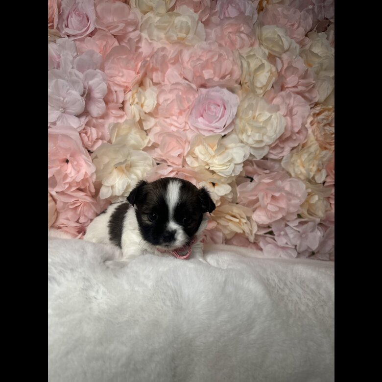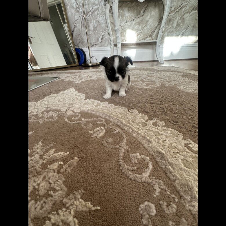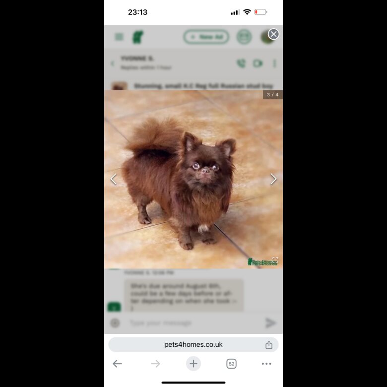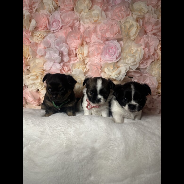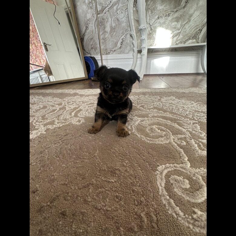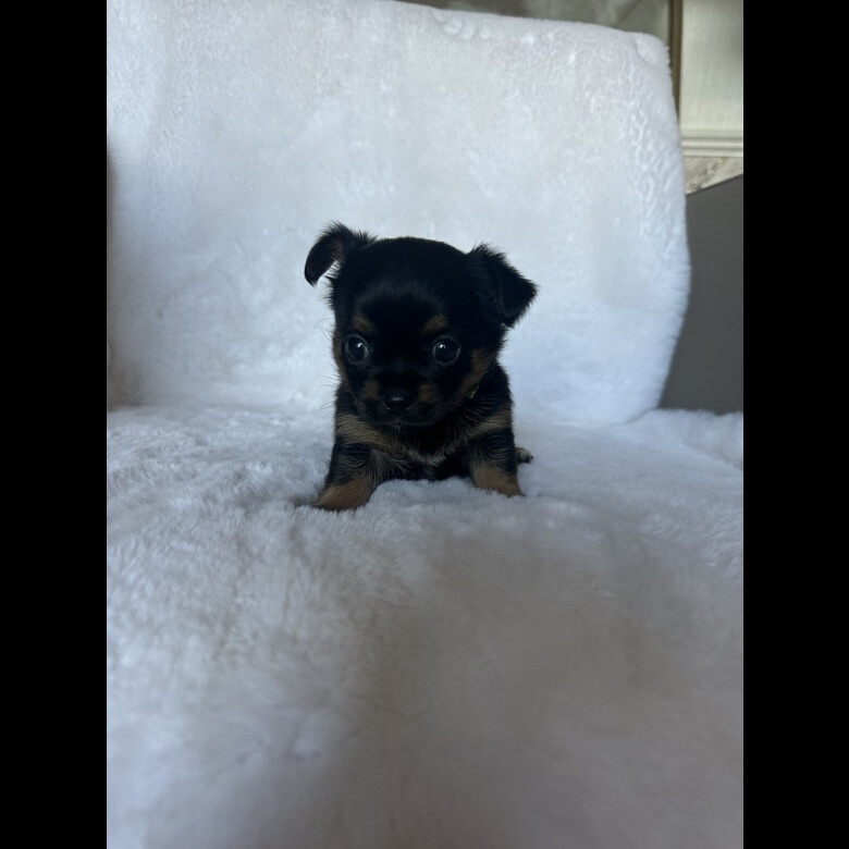 Dad is a beautiful chocolate brown Russian Chihuahua with a lovely temperament. Photos of both parents can be seen.