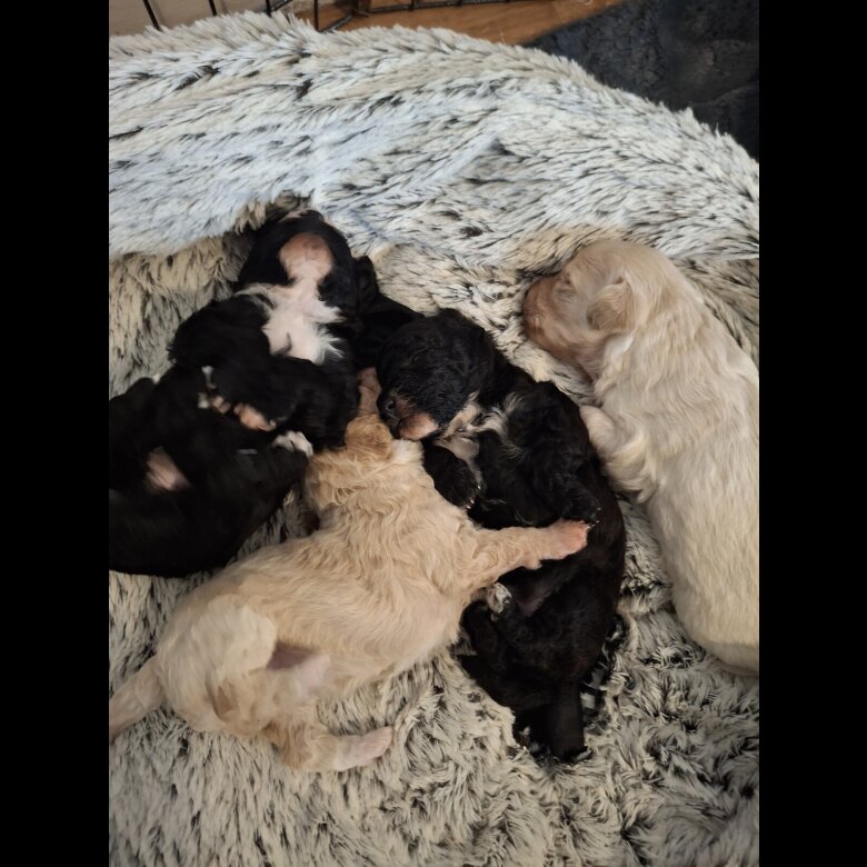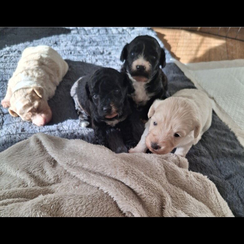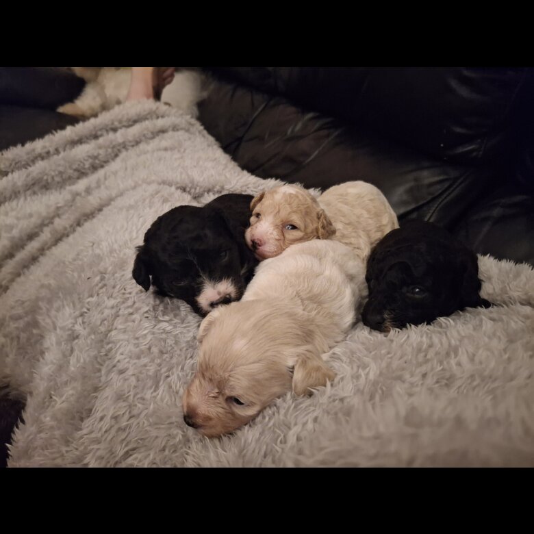 Beautiful mailtopoo x jackapoo puppies ready to leave 5th December at 8 weeks **** are 4 weeks old today Friday 7th Nov . They have just started to wean, been wormed from 2 weeks will also be flead .