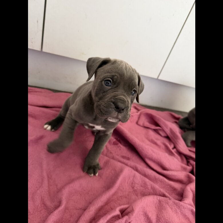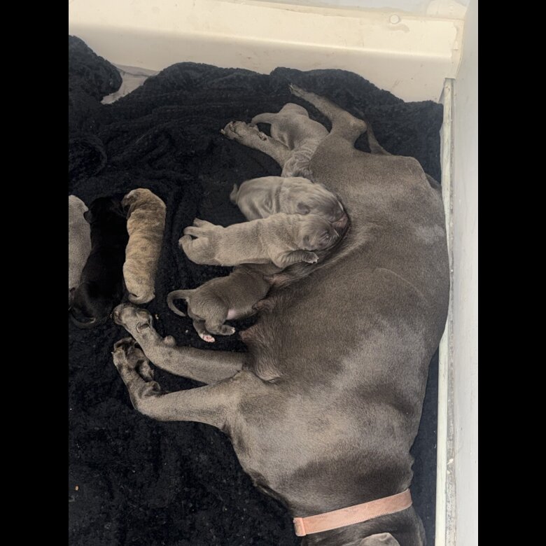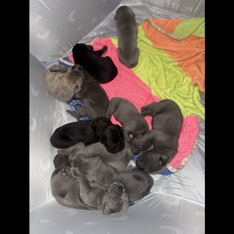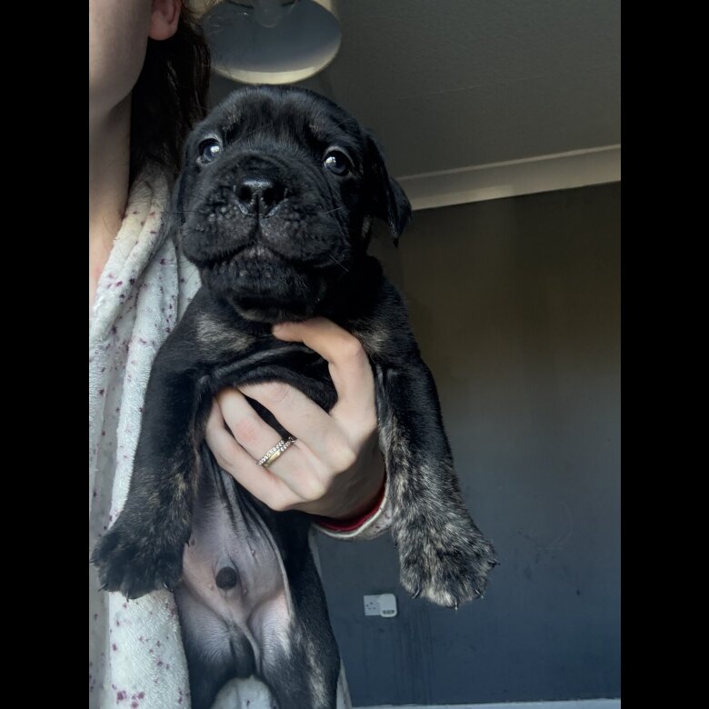 Our family pet Medusa delivered a litter of 8 beautiful Cane Corso x English Bulldog puppies on 23rd August. For collection from Rochdale area and now available for sale the boys are £500 the girls are £600 but the black and brown one is £800 will come with 1st vaccine and flea and worm treatment on collection £100 deposit on viewing to secure your pet as I’ve had a lot of messers mum and dad can be seen on the day as well if interested text or call anytime thanks.