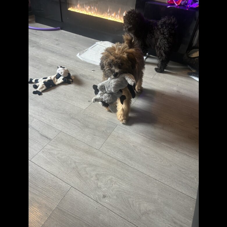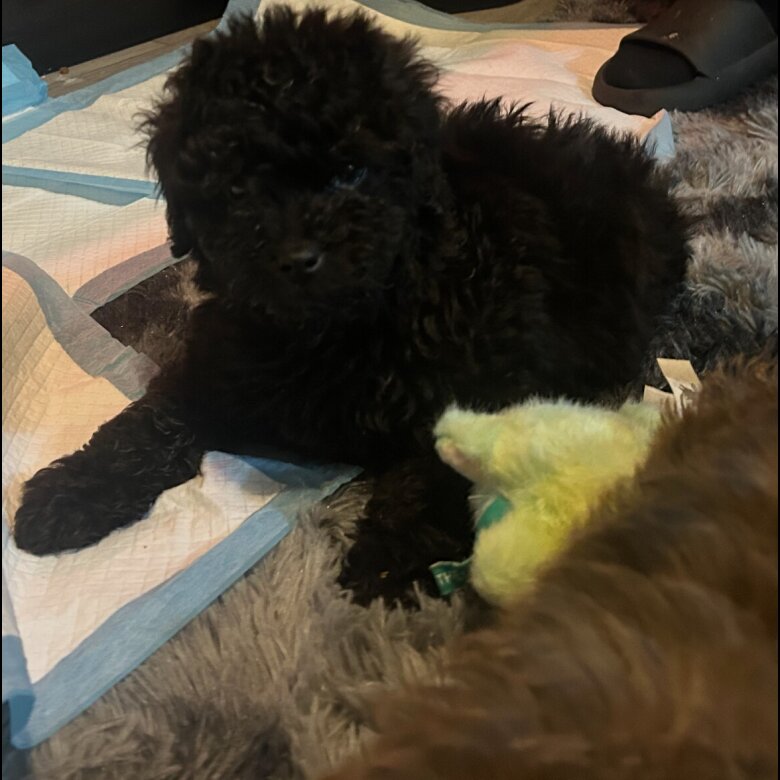 2 beautiful F1b Cavapoos. One entirely black male with tight curly coat and one tri sable girl,who is little fluff ball. Both are crate and toilet trained and have been wormed, flead, 1st vaccine and health checked with certificate. Mum is our black cavapoo and father is toy poodle. Pups have been brought up around children and other dogs. Both pups have a lovely ,playful nature and both absolutely love water😂 pups will leave with a little goody bag with their blanket and their favorite **** genuine enquiries **** message for videos