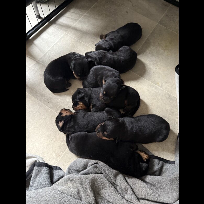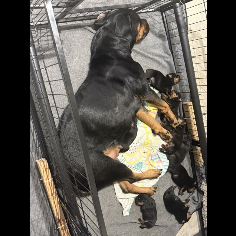 The mum is a boxweiller a real family dog she is. 1/4 boxer and 3/4 rottie. The dad Tyson is a full pedigree rottie the pups all look very rottie.