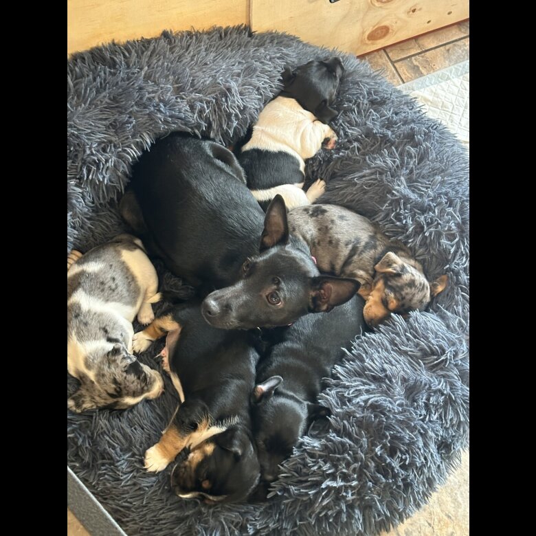 This is mums first litter and she’s been such a wonderful mum with Dad producing Merle pups before.