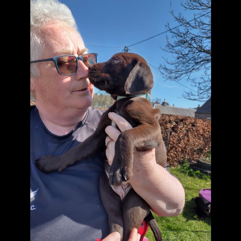 Labrador/GWP cross puppies from working parents. 1 brown boy, 1 black boy and 1 black girl available from April 11. Viewing and pickup near Coupar Angus, Scotland.