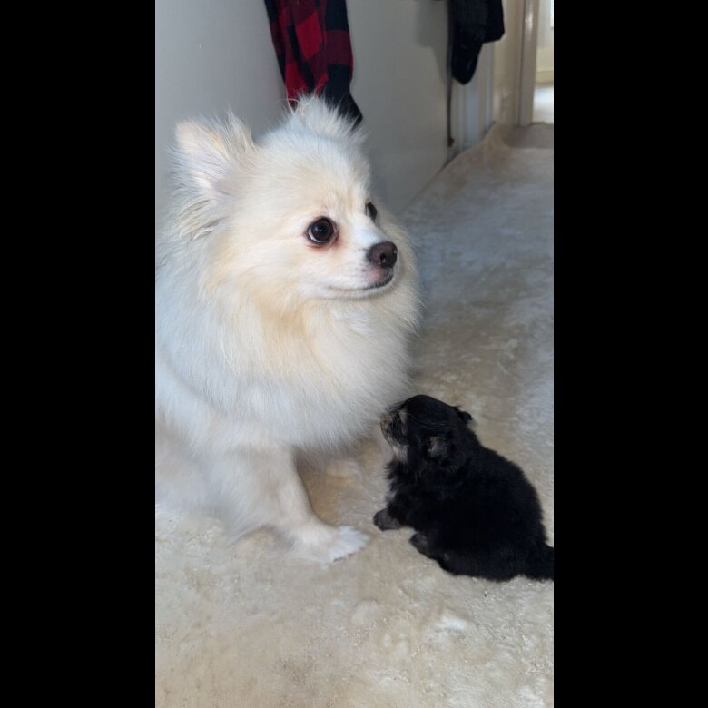 Indie is our family pet, she is a luxury double coat white Pomeranian and this is her second litter. Indie is KC registered and health tested.