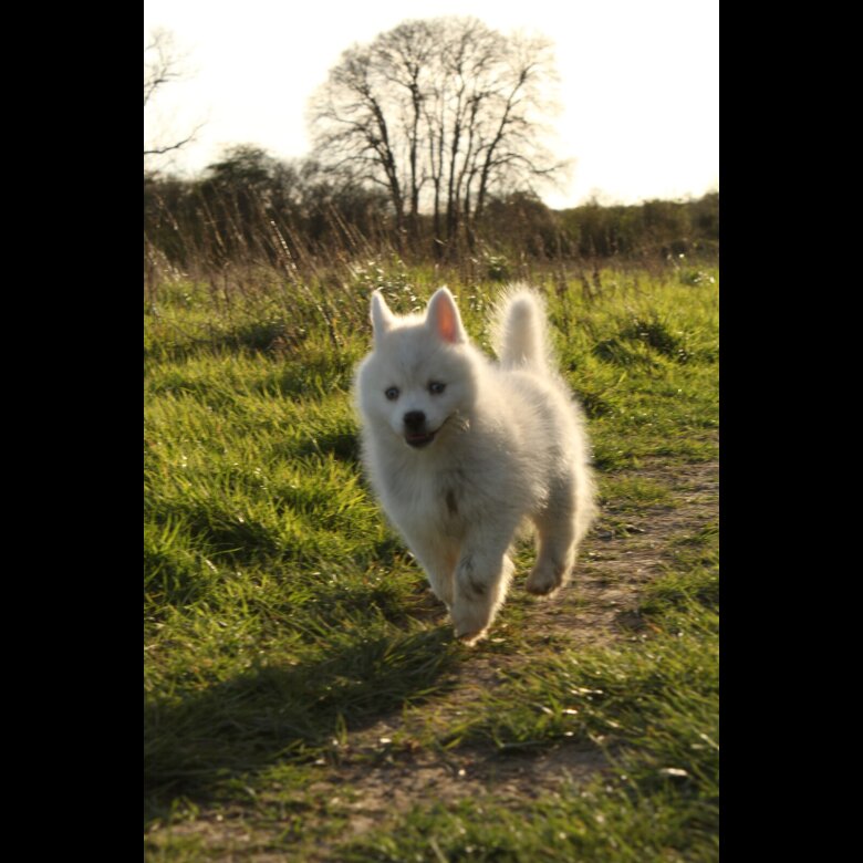 Feel free to text or call for any questions or further pictures. FaceTime can be arranged so you can see him live ! Meet the little boy who will change your world. 🐾 There are moments in life that stop you completely and the first time you lock eyes with him, you'll understand exactly what that means. He's a Pomsky boy, small enough to cradle in your arms, with a coat of the softest cream you've ever touched, delicately kissed with the wild, smoky markings of his Husky heritage. But it's his eyes that will undo you. A deep, striking blue: the kind that looks like it holds tiny winter skies inside and they gaze up at you with a trust so pure it squeezes your chest. He doesn't know yet how special he is. He just knows warmth, and play, and the joy of being loved. Right now, he's looking for the person or the family who will make his whole little world. He'll be the one waiting at the door when you come home. The warm weight curled against you on a slow Sunday morning. The ridiculous, fluffy reason you smile on a hard day. He'll give you everything he has, unconditionally, for his entire life. All he needs is you.