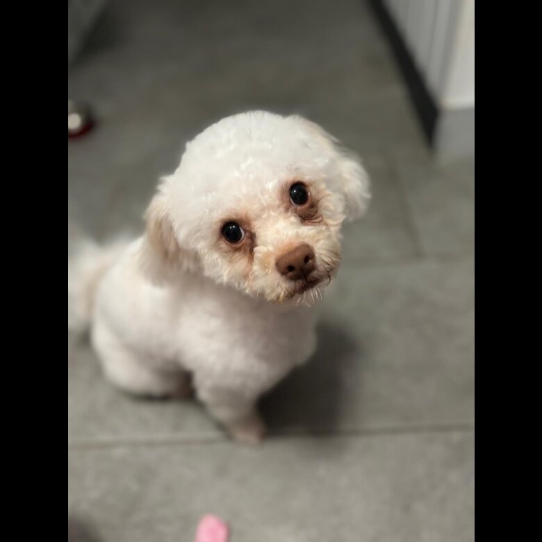 Mom is our amazing family pet poppy, she is a full bichon frise and white in colour. Poppy has an amazing temperament very loving and loyal.