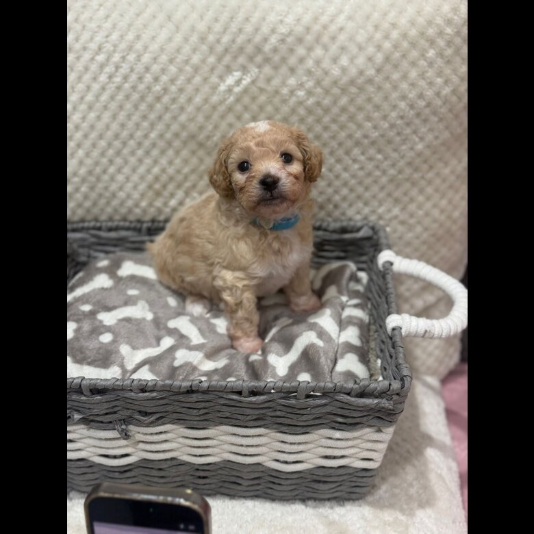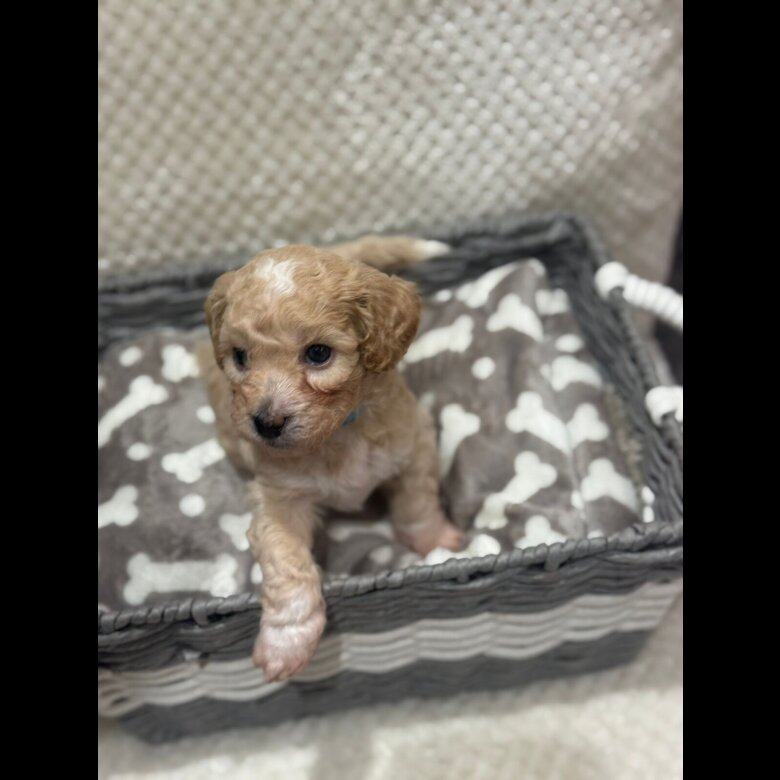 Hello, I have 4 beautiful poochon puppies looking for their forever homes. A stunning litter of 4 boys. 2 boys are a light brown colour, and 2 boys are apricot colour, all with bits of white through their hair.
