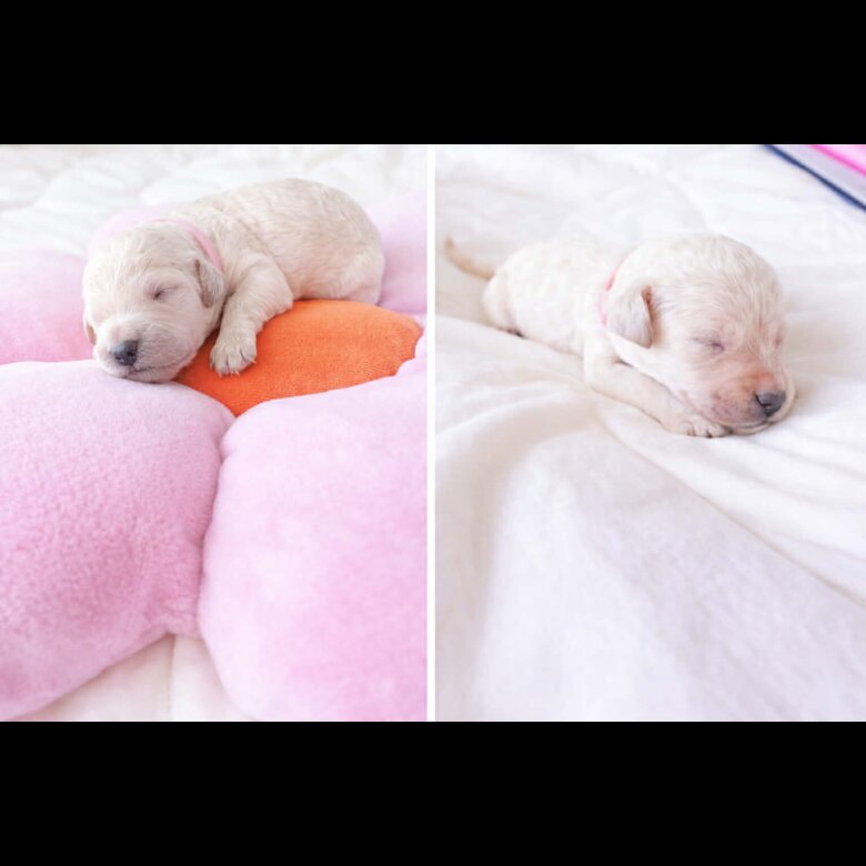 The sire is a very bright white, while the dam carries a softer cream tone. Puppies are expected to mature within the white spectrum, although some may retain light cream shading. This is a natural and acceptable variation within the breed.