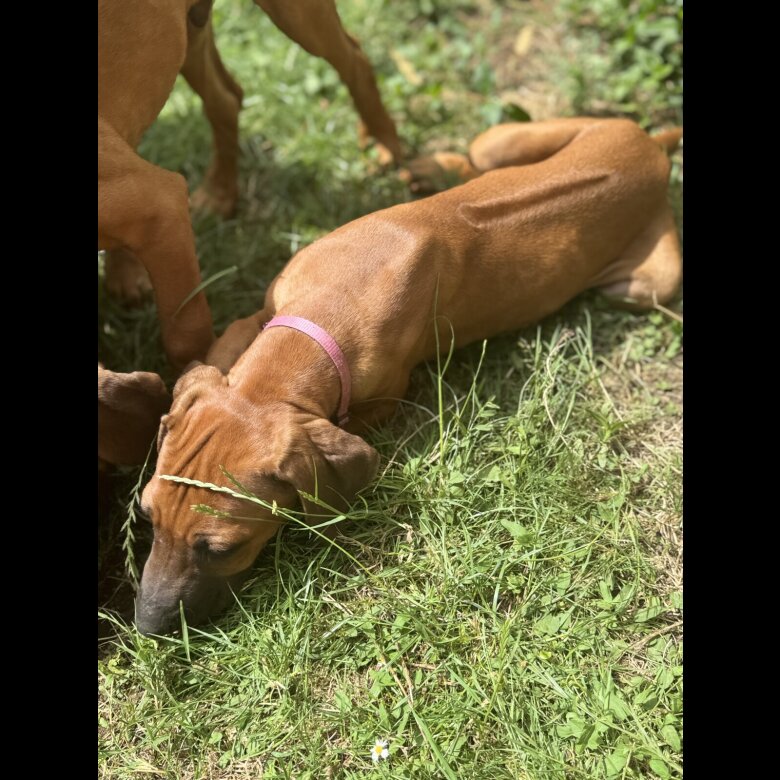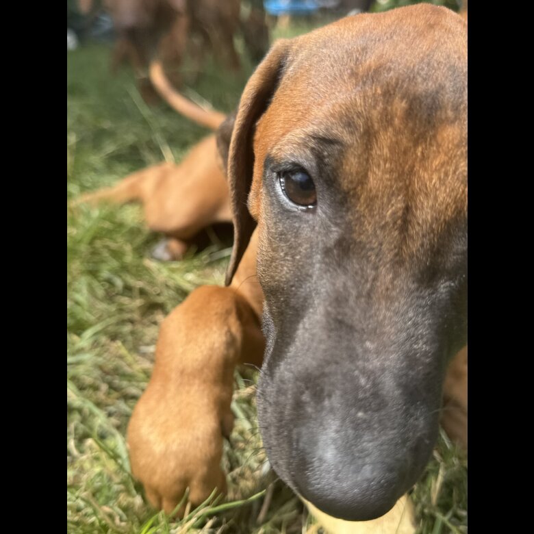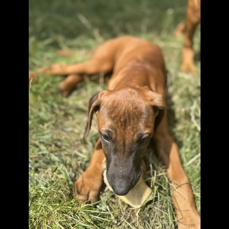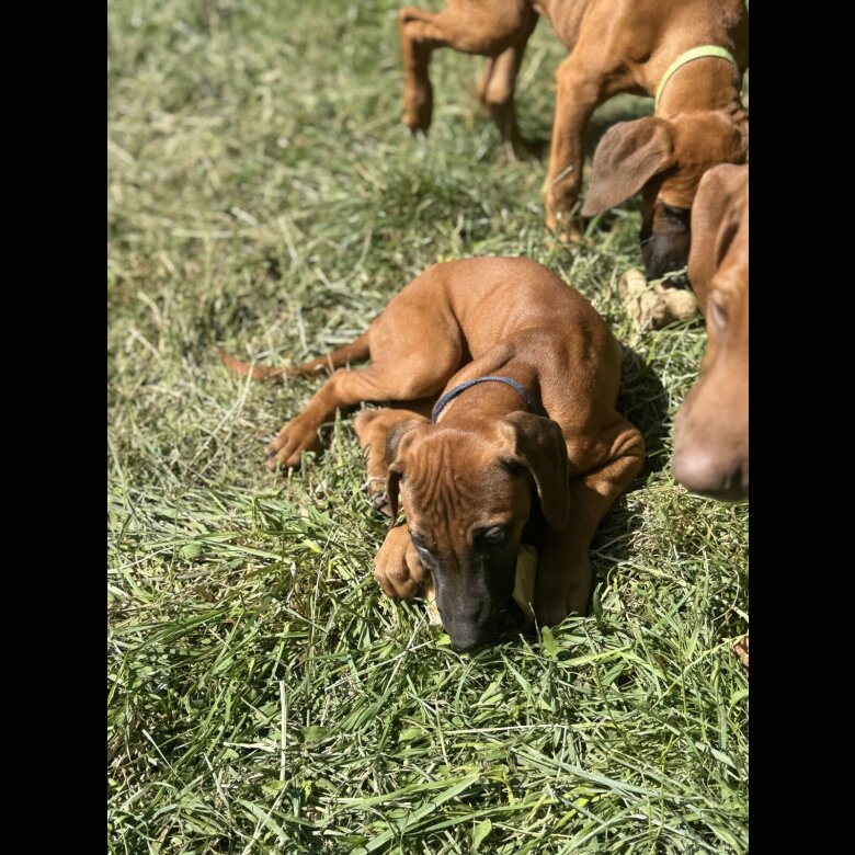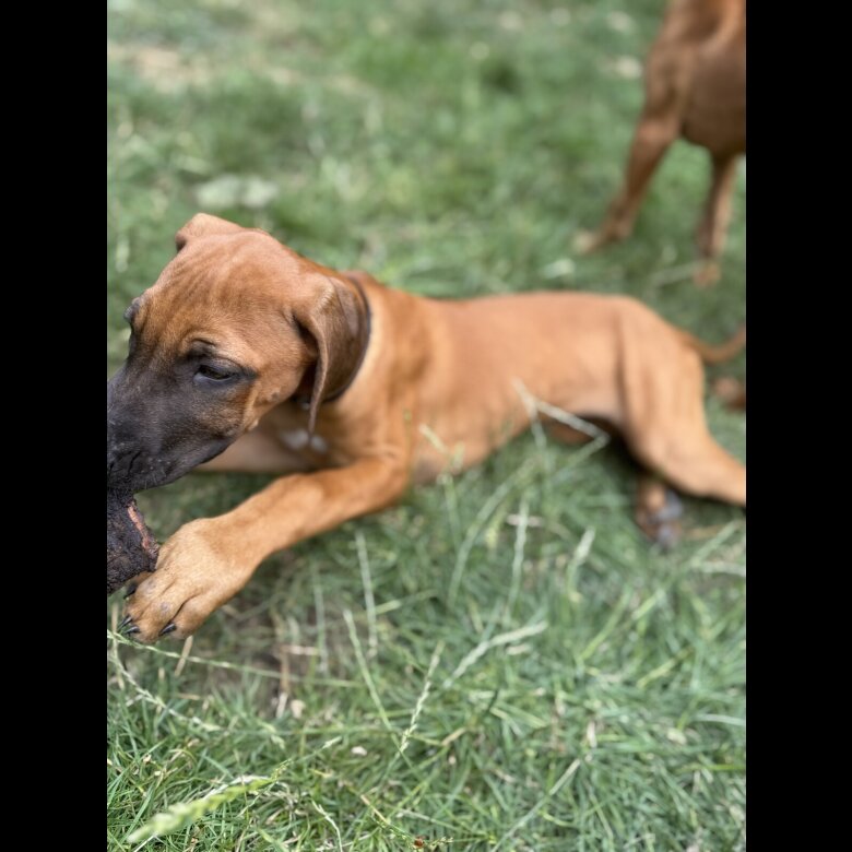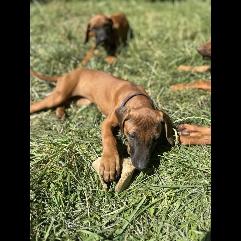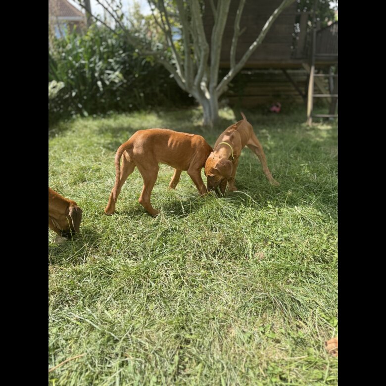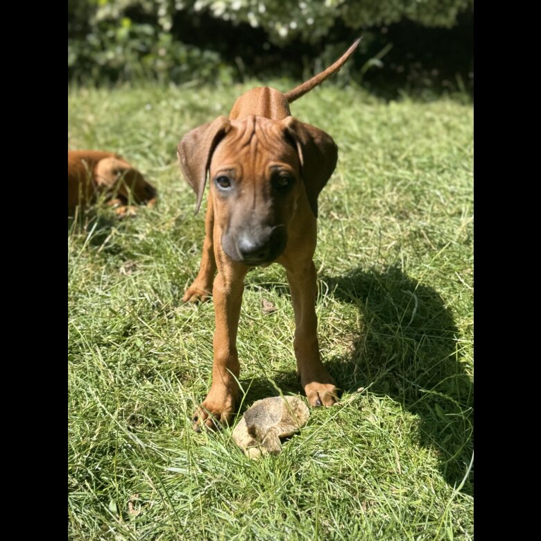Our last puppy is a livernose Ridgeless boy, Red Wheaten in colour, he has been wormed monthly, and comes microchipped and is now fully vaccinated with documents and has all been health checked by our vet at pets at home in Dover. Our last puppy is ready to find his forever home. Please read up on Rhodesian Ridgebacks if you are new to this breed!!