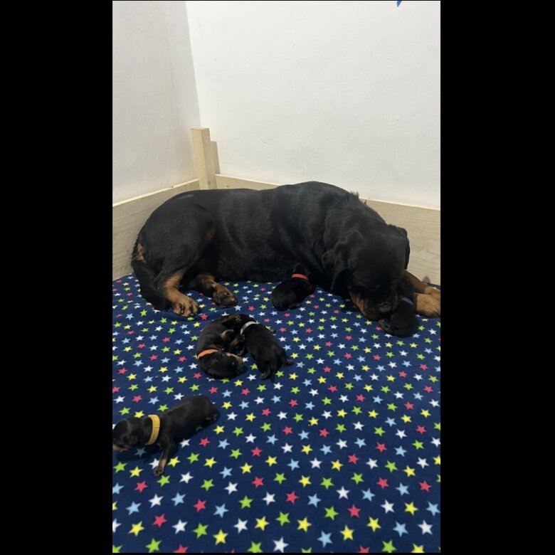 Top line German rottweiler puppies .We present this carefully planned litter of 5, 3 boys and 2 **** are descendants of multiple champions sire: Stone vom Haus Flo belongs to world famous Oliver Neubrand kennel in Germany and is direct son of Rudi vom hause Neubrand multiple champion & Ultra Von der Crossener Ranch dam: Vroni Von der Crossener Ranch belongs to us and comes from a long line of champions like- ADRK Escobar vom Arius & Hella Von der Crossener Ranch Both parents are hip and elbow scored and health tested { Lemp//Jlpp/Long coat/Degenerative myelopathy/Neuroaxonal dystrophy}.All the tests can be seen at viewings. Puppies are raised inside our home with much love and dedication, and will only go to the best of homes .They are a fine example of their breed and are raise in a household with other dogs and cats. New parents for our puppies will benefit of our lifetime support and be welcomed as our extended family. Any questions not covered here please feel free to message us. Puppies will come with : ,microchipped, 3 dewormed , 2 vaccine , puppy contract and puppy pack including food bag to ease transition into their new homes Whats App