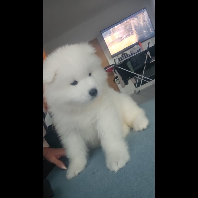Winter and I are looking forward to meeting wonderful people. He's sitting and waiting to give his whole heart to someone, to brighten someone's home, playing with delight every day, knowing he's the one of their dreams. And me? And I'm sitting and waiting for someone to finally write to me and tell me: Edyta wants him! I want him just as he is, with all his gear already prepared for him. I'm waiting for someone who won't hesitate, bid, write, ask questions, and then disappear like the people I spend my time with do. Winter is an exceptional boy, delightful and beautiful. His strong chest, large head, beautiful coat, black nose, and those beautiful eyes will make you fall in love with him from the first sight. He's the perfect Samoyed you dream of. If you've seen his father, you already know this is his little, beautiful copy. Such a litter of Samoyeds is rare! Why? Because boys of this breed should be massive, have lush fur, and a wonderful, fluffy tail.  They're celebrity dogs that no one can resist taking for a walk. I could go on forever, but we're still waiting... for that one family I know is out there somewhere! In a few days, each of his siblings will set off on their own adventures with wonderful people. And I don't want him to be left alone. The attachment to these little creatures is immense, and parting with them hurts like nothing else. So if Winter has stolen a piece of your heart, you want to meet him and give him what he deserves, please contact me 🐾🖤