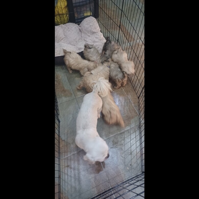 4 lovely shih tzu puppies looking for there forever home they have bin microchiped and vet checked both parents can be seen has they are both my beloved furry baby's each one has there very own little caricature