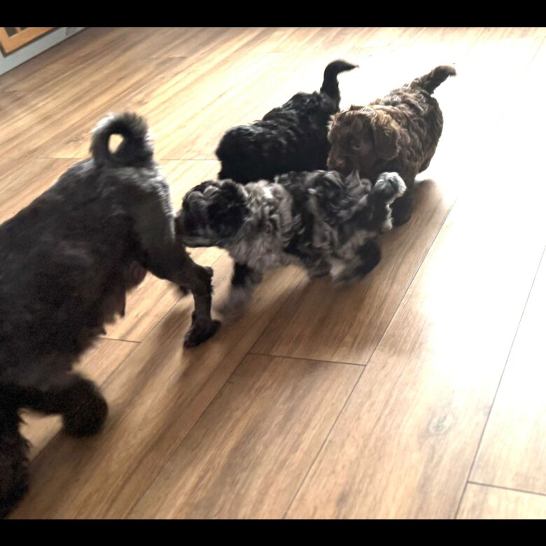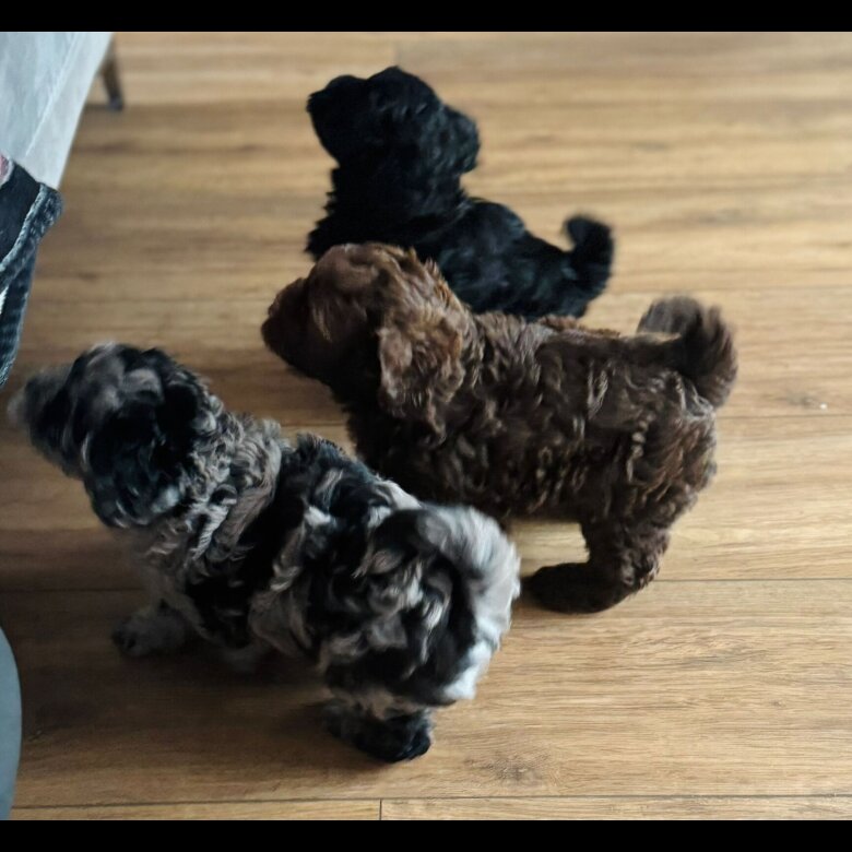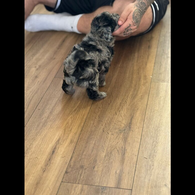 Ready to leave now, i have 3 amazing quality Shihpoo puppies for sale. Their mum is my pet shih Tzu Lily, who is a smoke black and their dad is a merle miniature poodle (stud). These puppies have been raised in a busy house hold with kids, other dogs and usual house hold noises. I have started to groom them, getting them used to have their faces touched and paws ect. All three puppies have had their microchip and first jab. They have been flead and wormed, they will come with a small puppy pack and 5 week free insurance with agria. I have reduced these amazing puppies for the last time, they need new homes to call their own 😃