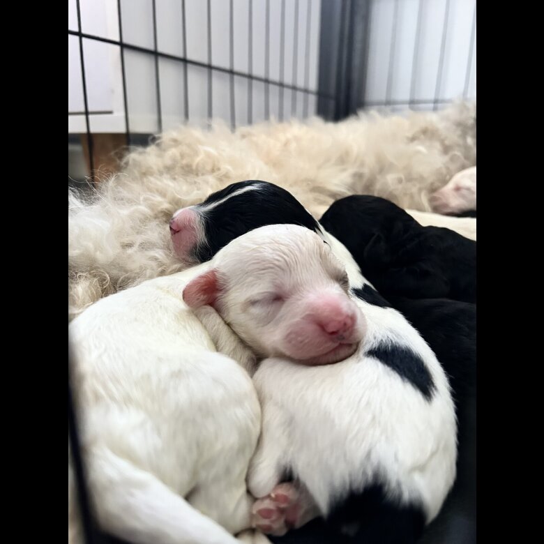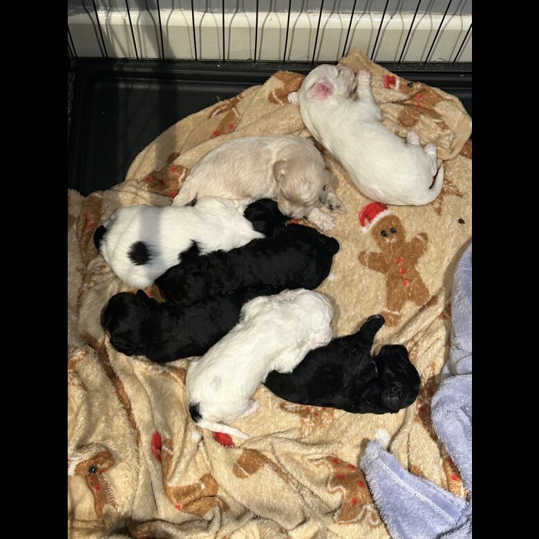 Our beautiful girl Rue gave birth to 7 puppies on the 5/09/2025, 5 boys and 2 girls. Mom is a shihpoo (shihtzu x poodle) and dad is a sproodle (springer spaniel x poodle).Photos of mom and dad are on the ad. This is rues second and last litter so photos can be shown of the previous litter to get an idea of what they will look like when they get older. Both mom and dad can be seen as both are family pets :)