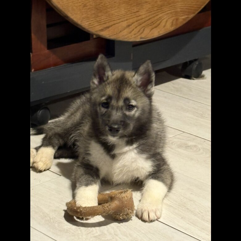 1 girl 4 boys were born (others are all reserved ) both parents are shown and worked in harness this breeding is from our imported female and our home bred male dad has recently just been made to a uk show champion and also filmed masters of the air (shown currently on Apple TV) and played the meatball dog character he’s had numerous best veteran in breeds and working group places also a reserve best veteran at a championship show. Mum has a reserve ticket (these make the dog a champion after so many tickets gained) also she’s had best of breed placings and group placings both dogs have worked for Lapland uk and have outstanding temperaments puppies can be viewed with mum and dad 1 agouti girl puppy available NOW for her forever home she’s flea treated wormed vet checked kc reg and microchipped