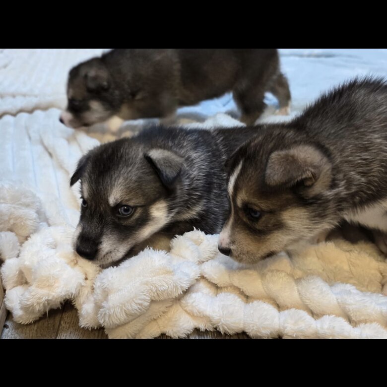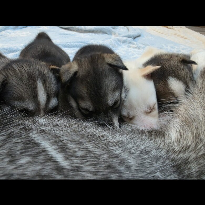 Parents are Siberian Huskies, great temperament, brought up with family and children