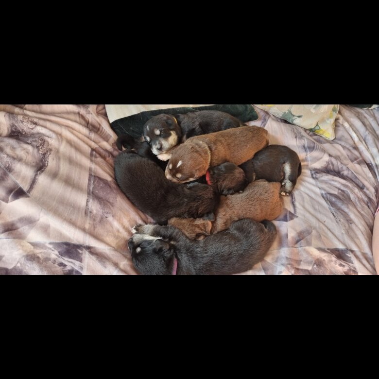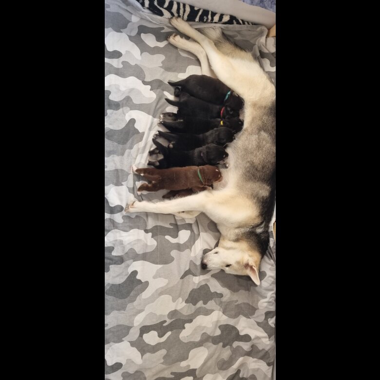 Little puppies born on 6th of March. Mum is a Husky and dad Chocolate Labrador both live in a family house with children and another dog, they are both very socialise. Puppies will be vaccinate, get full health check and worms treatment on 5th of May.