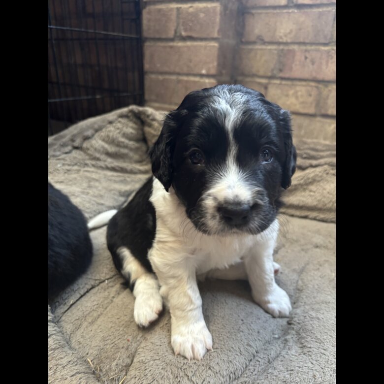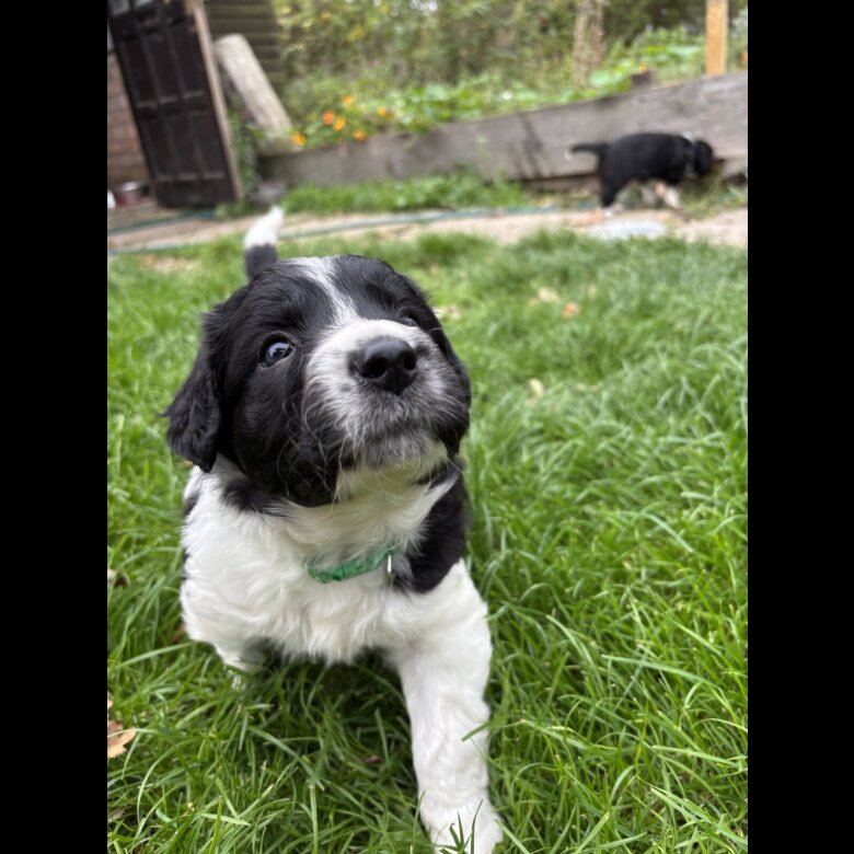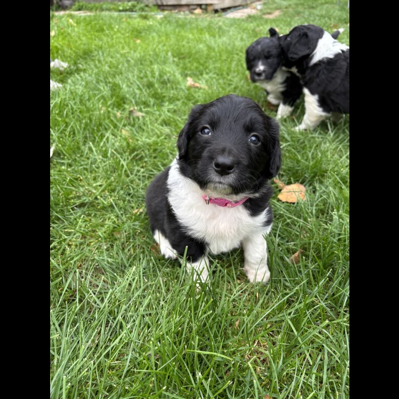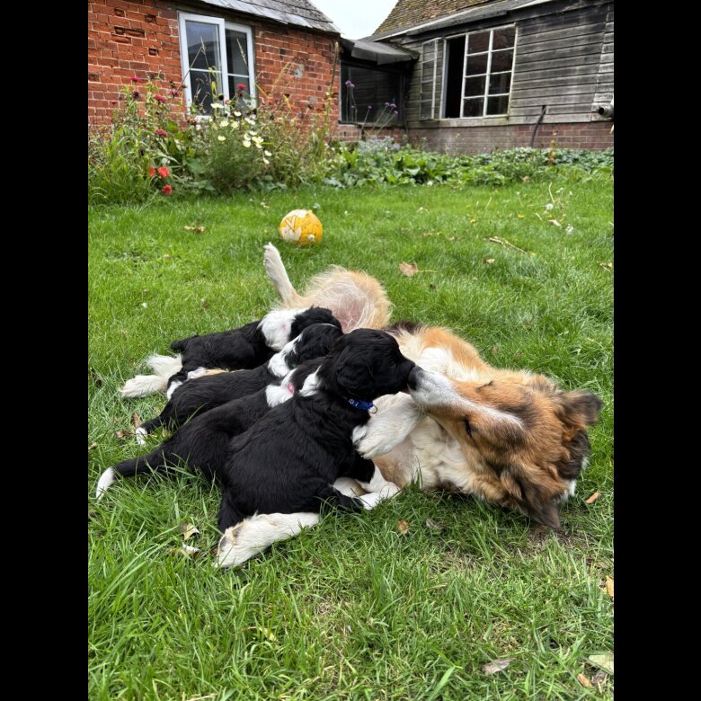 We have 3 gorgeous female Border Collie cross Springer Spaniel puppies looking for homes. They are all very lovable and full of beans, and are accustomed to busy family life, having grown up with our other dogs on our family farm. The puppies parents, despite enjoying cuddles in the evenings, are working dogs by day, so their puppies would be best suited to active households. The puppies will have been microchipped and will be up-to-date with their vaccinations, and worming and flea treatments by the time they are ready to go to their new homes. Genuine enquiries only please, we want them to go to lovely homes, Buffy, their mother, is such a special dog.