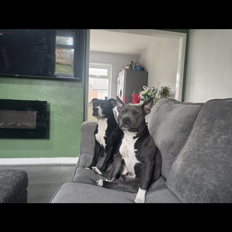staffy puppy’s for sale , 5 girls 2 boys they all have blue in them so could produce blue puppies . both mother and father can be seen. looking for forever homes. please message with any questions. they are ready too leave 26th may at 8 weeks old.