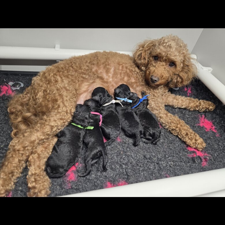 We are absolutely delighted to announce the safe arrival of a stunning litter of 5 Black Toy Poodle puppies, born on 9th January 2026.