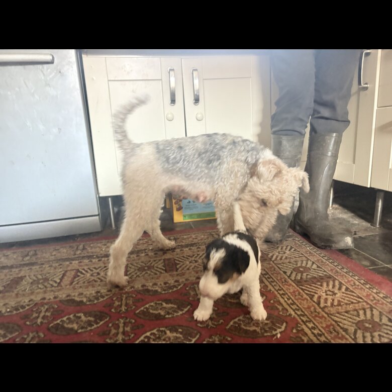 Introducing our exquisite Wire Haired Fox Terrier puppies, born from exceptional bloodlines. Their father, Damirel, is an imported stud from Poland, boasting a pure pedigree with no family members crossing. He is KC registered in both the UK and Poland, ensuring authenticity and adherence to high standards.