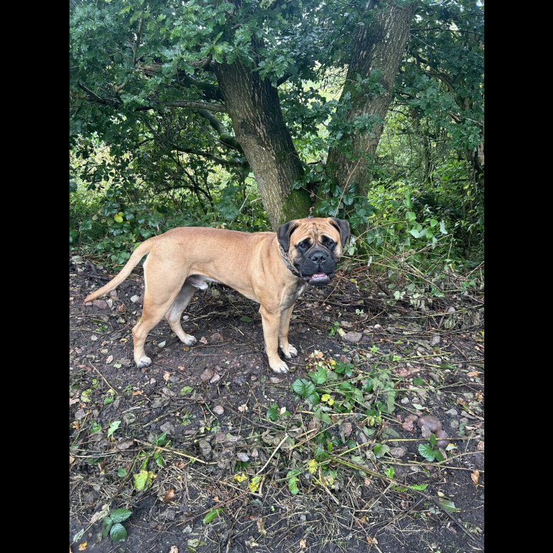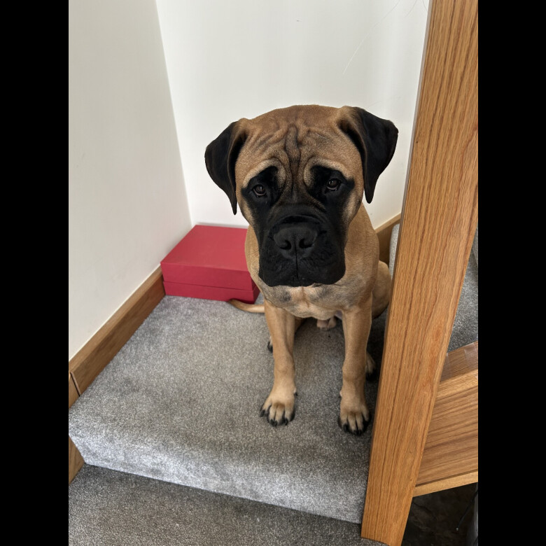 Introducing Finn Shelby of the Garrison, our stunning 2-year-old red Bullmastiff with a black mask, now available for stud.