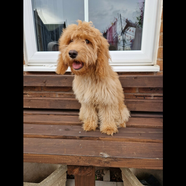 Teddy is a charming and well-bred Cockapoo with a friendly temperament and stunning looks. He boasts a beautiful, soft, curly coat that’s hypoallergenic and perfect for families. With excellent health, great pedigree, and a playful yet gentle nature, Teddy is an ideal stud for producing happy, healthy, and sociable puppies. His affectionate personality and balanced energy make him a wonderful companion and a perfect match for your Cockapoo breeding plans. If you're interested please get in touch.