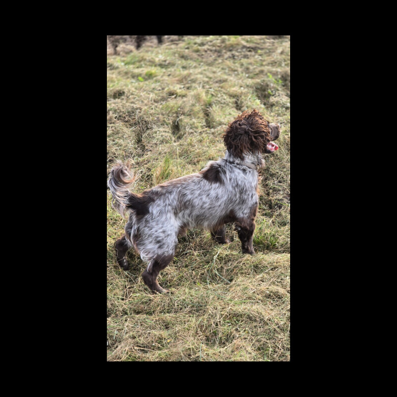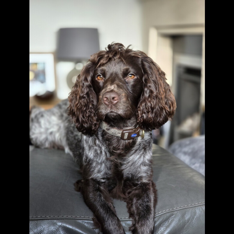 Gunner is our much-loved liver roan working cocker, compact and stylish with a bold but gentle nature. He’s fully health & DNA tested (all clear) and has already proven himself as a sire, producing strong, healthy pups in both liver and black.